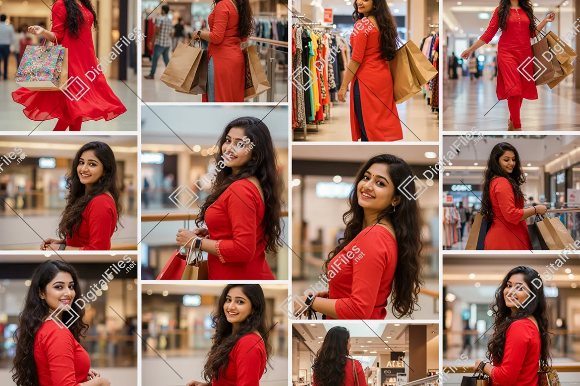 Upgrade your visuals with this premium 15-photo collection of Indian girls shopping photos, captured in a modern mall setting with joyful expressions and colorful shopping bags. Designed in a realistic 1536×2816 resolution, these images offer a fresh and vibrant lifestyle feel that perfectly suits fashion, retail, and marketing projects.